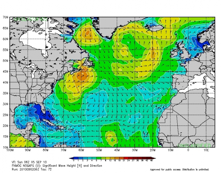 Mar de fondo de 1 metro. Peridos altos de olas.